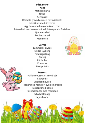 Välkommen in och boka bord för påsk buffé 3-5/4 , här finner ni massor av klassiska rätter i vår påsk buffé där allt är lagad av kärlek.